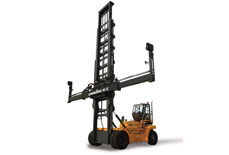 功能特点: 1.整机配置高强度宽视野门架,门架采用两节式,设计在各个堆垛箱位高度时,内外门架横梁达到重合,最大程度保证驾驶员的视野。 2..驱动桥采用德国KESSLER生产的重型车辆驱动桥。该桥设计合理,桥壳强度高、承载能力大,安全可靠,使用寿命长。配冷却油路的湿盘式刹车装置,配有氮气蓄能器,可在发动机熄火状态下自动打开,提供6次以上紧急制动压力,安全可靠。 3.变速箱采用了美国DANA公司的TE-17000型变速箱,前进后退各三挡。全自动换档,倒退保护,同步器;带空挡点火和微动功能。 4.采用瑞典VOLVO TAD 720VE发动机,6 缸涡轮增压器带循环水冷却,全电控电喷,噪音低,油耗低,排放符合欧洲二号标准。 5.空箱吊具采用20-40英尺伸缩式吊具。吊具带有侧移功能,使得操作更加灵活方便,节省吊箱循环时间。 6.配备目前世界上最先进的变量柱塞泵以及负载感应阀的载荷感应系统,可以根据负载的大小提供相应的液压流量并形成相应的系统压力,降低油耗,更轻松提升,减少发动机、变速箱及液压系统损耗。 7.配备箱式底盘,车架体为焊接的厢梁结构,液压油箱及燃油箱为悬挂结构,整体受力好,方便运输。整机布局合理,空间大,便于检查维修。 8.CAN总线电控系统,发动机及变速箱配有电控单元,带故障检测及报警功能。电器元件排列清晰,维护保养十分简便。 9.配备先进的人性化的宽大驾驶室,视窗玻璃采用大幅圆弧无前置角柱,保证绝佳视野及安全倒车视野;配备正面、顶面及后侧电动雨刷机;配备冷暖空调系统,保证操作的舒适性。 10.配备意大利HC公司的集成操作手柄,门架及属具的所有动作全部集中在一个手柄上,方便了司机的操作,降低司机的疲劳程度。